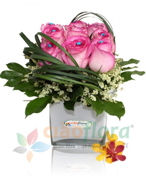 Sometimes you wonder: "how many roses do I send"? To send the message “We’ll be together forever,” send this bouquet of nine roses. Vase included.