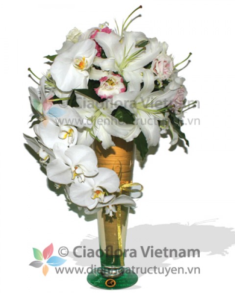 Available in HCMC only. Color of lilies, phalaenopsis orchids may be changed in case white color out of stock.