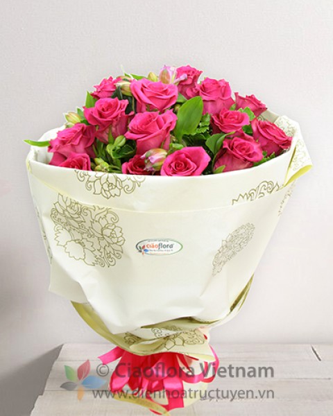 Sending a bouquet of beautiful roses says it all. Ciaoflora florist will select the finest, large-headed roses to create a hand-tied bouquet guaranteed to bring a smile to anyone's face. Featuring large-headed roses hand-tied with alstroemeria and leaves, and wrapped with high quality paper.