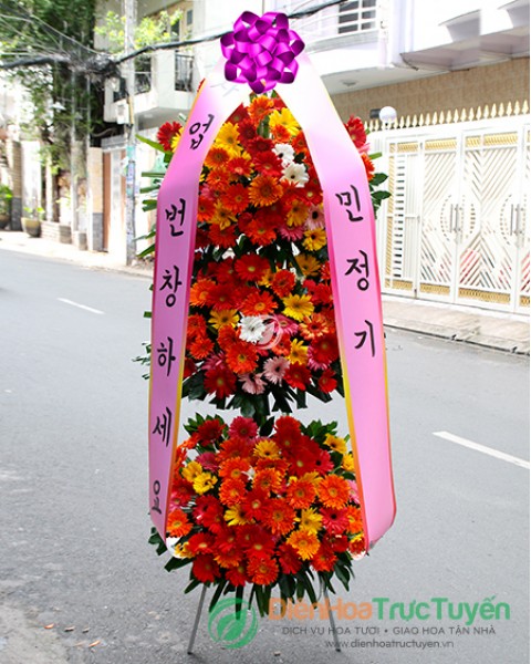 Congratulation stand flowers in Korean style with 3 tiers. The message can be printed in Korean, Japanese...