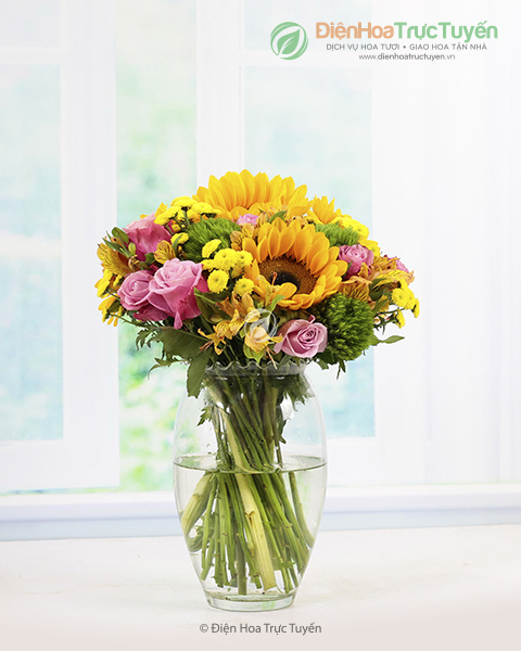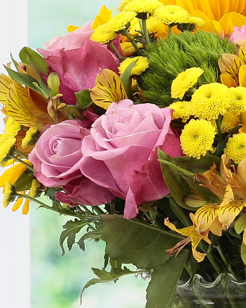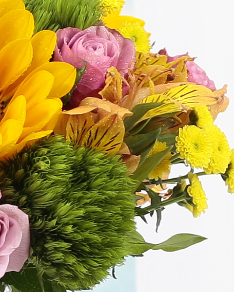 When you need to say everything and more, say it with the Color Life. An natural blend of sunflowers, roses, peruvian lilies, calimero chrysanthemums and green wicky creates vibrant hues in one of our most remarkable bouquets. The blooms are arranged to perfection in a glass vase, promised for a long lasting life. More importantly, it has everything that will leave a happy smile on the recipient's face.