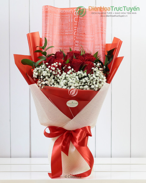 Nothing says love better than bouquet of red roses arranged with baby breath in classic style.