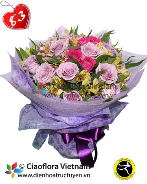 The selection of premium roses features varieties in sweet shades of violet roses, pink roses and alstroemeria, creating a very calming and incredibly beautiful gift.