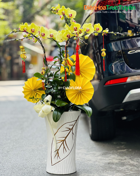 A perfect gift to welcome the Lunar New Year. A pot of 5 stems of yellow orchid is the perfect choice if you're looking for a sophisticated, contemporary gift for your partner or family.