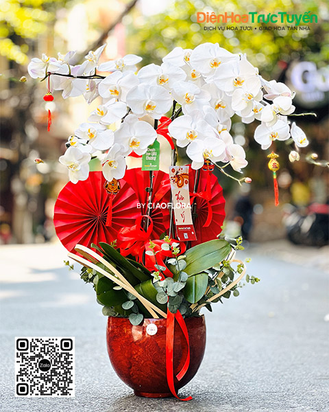 Celebrate the Lunar New Year in style with our exquisite White Phalaenopsis Orchid pot! Adorned with five delicate stems of pristine white blooms, this elegant arrangement is thoughtfully designed to bring beauty and tranquility to your space. Arrangered in a premium red pot, the orchids take center stage against a backdrop of festive Lunar New Year red, creating a perfect harmony of sophistication and tradition. Embrace the spirit of renewal and prosperity with this stunning floral centerpiece – a timeless gift and a symbol of good fortune for the year ahead.