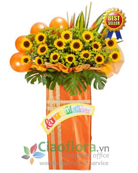 This congratulation stand is full of sunflowers and ballons. Please order 1-2 days in advance for the best appearance.