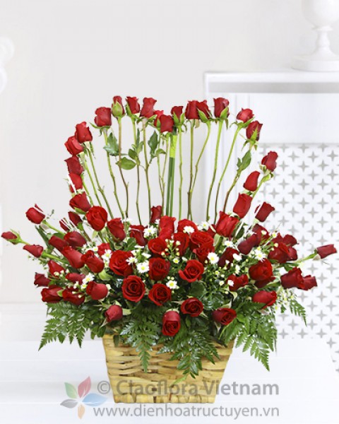 This heart-shaped basket is practically overflowing with beautiful, hand-selected, red roses and trimmed with a seasonal floral accent. Just imagine the look of surprise and excitement on her face when she receives this grand gift!