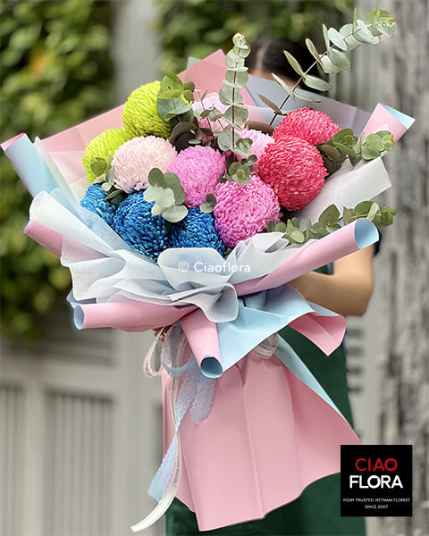 Recently, "giant Japanese chrysanthemum" is hot key word thanks to their attractive beauty. Forget clasical roses! The bouquet of 12 luxury flowers transcend the ordinary, making them as unforgettable as the person who receives them.